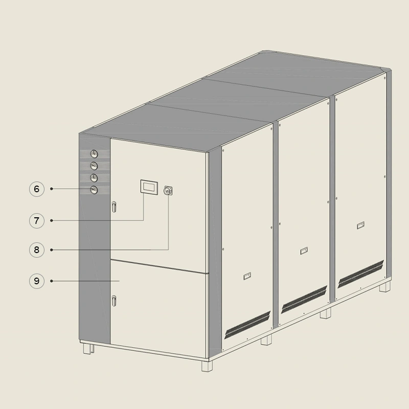تعرف المبردات الصناعية المبردة بالماء (شيلر تبريد بالماء) بكفاءتها العالية وأدائها التبريدي المستقر. باستخدامها الماء المتداول من برج التبريد لتكثيف غاز التبريد، تحقق هذه المبردات كفاءة في استهلاك الطاقة وتشغيلًا أكثر استقرار مقارنة بالمبردات المبردة بالهواء (شيلرات تبريد بالهواء)، مما يجعلها مناسبة بشكل خاص للمنشآت الصناعية الكبيرة والبيئات ذات درجات الحرارة العالية. تتميز المبردات المبردة بالماء بهيكل صغير الحجم، ولكنها تتطلب نظام تبريد مائي داعم لضمان التشغيل السليم.